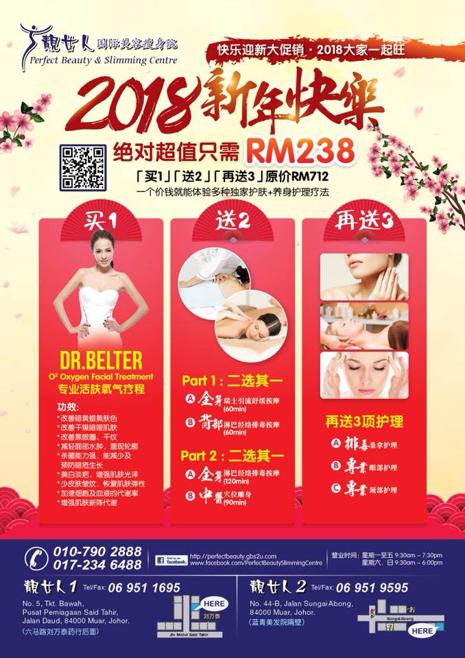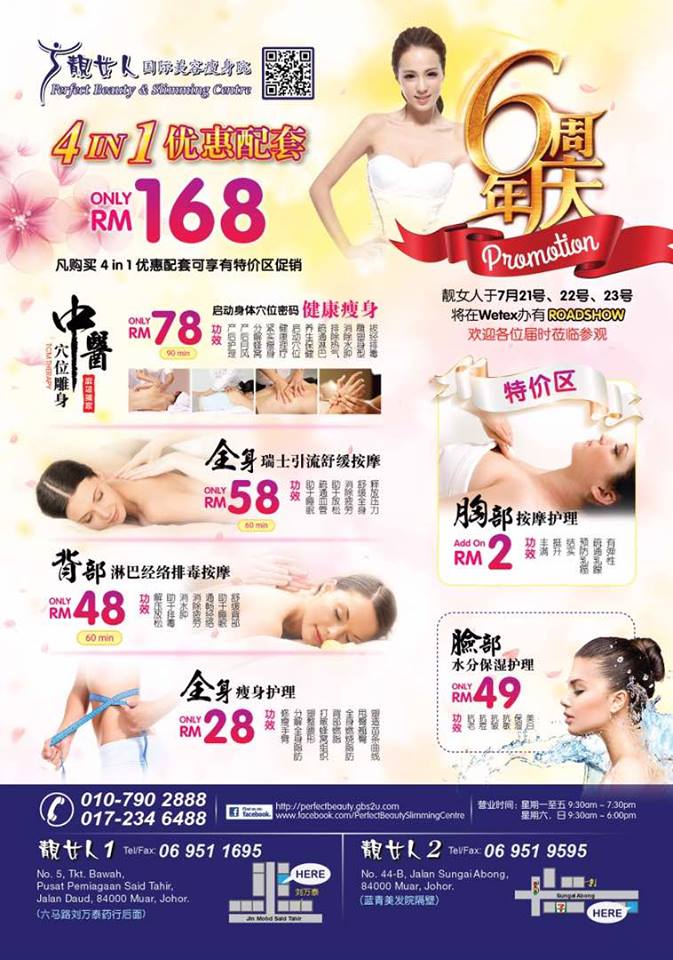 2 国际美容瘦身院 PERFECT BEAUTY & SLIMMING SALON. No 44-B, Jalan Sungai Abong, 84000 Muar, Johor, Malaysia. HOTLINE:+606 - 951 9595